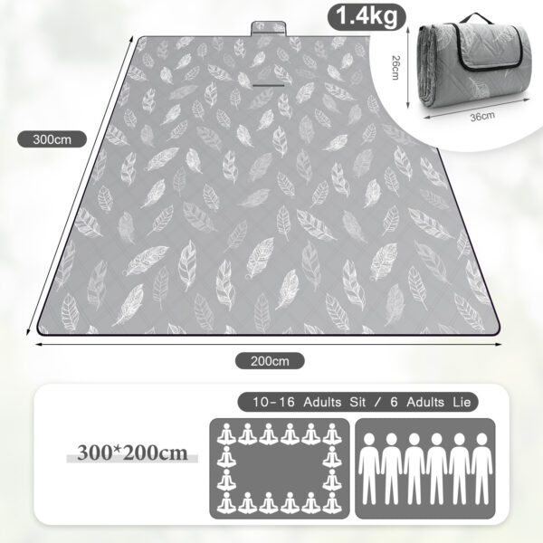 【XXL Picknickdecke 300 x 200】Die ausgeklappte Größe der Picknickdecke beträgt 300 x 200 cm. Die Fläche ist ca. 6 qm groß und bietet Platz für 6-12 Personen. Das zusammengeklappte Format beträgt ca. 36 x 26 x 12 cm, das Gewicht beträgt ca. 1,4 kg und kann in der Hand gehalten werden, praktisch und platzsparend.