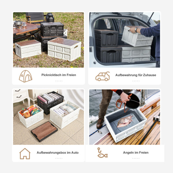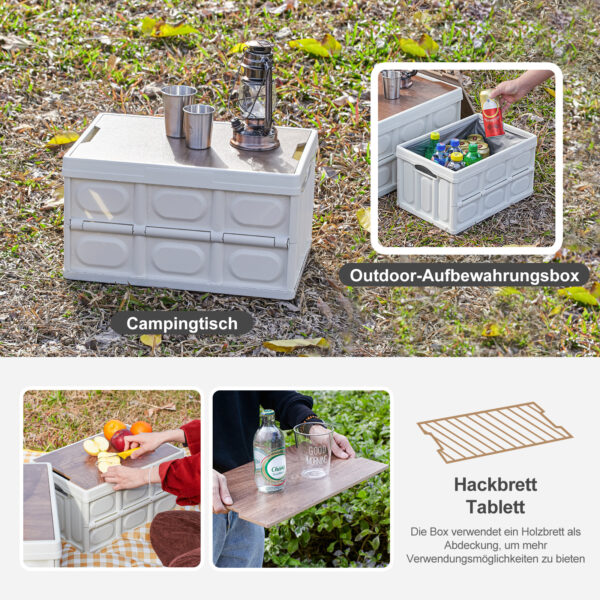 Outdoor-Campingtisch: Der Deckel der Box ist ein Holzbrett, das als Schneidebrett zum Schneiden von Gemüse, als Tablett und als Campingtisch verwendet werden kann.