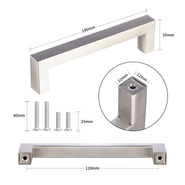 Die Handgriffe sind aus poliertem Edelstahl. Die Seitenteile bestehen aus gebürstetem Edelstahl. Die Griffe sind hochwertig verarbeitet und bieten eine besonders schöne und elegante Form. Diese modernen Möbelgriffe passen ideal zu verschiedenen Schränken und Kommoden im Küchen-, Wohn-, Schlaf- und Essbereich.