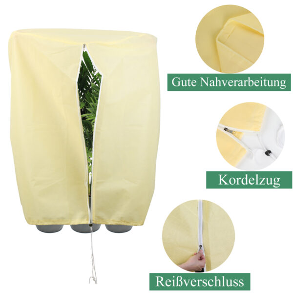 【Reißverschluss + Kordelzug + Schloss】An der Seite des Stoffbezugs befindet sich ein großer Reißverschluss und an der Unterseite des Pflanzenstoffbezugs ein verstellbarer Kordelzug, mit dem Pflanzen einfach und schnell abgedeckt werden können. Am Kordelzug befindet sich ein verstellbarer Verschluss, der die Abdeckung an der Pflanze fixieren kann, ohne vom Wind weggeblasen zu werden
