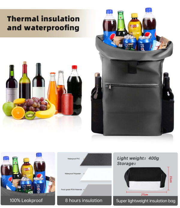 - Bis zu 8 Stunden Frischhaltung: Im Inneren befindet sich eine Isolationsschicht, und die Eisbeutel sind mit einer Wärmepressnahttechnologie verbunden. Dies gewährleistet eine leckagefreie und isolierte Leistung, so dass Ihre Lebensmittel und Getränke bis zu 8 Stunden lang kühl gehalten werden können. Egal ob lange Reisen oder Outdoor-Aktivitäten, Sie können diesen Rucksack beruhigt verwenden, um Lebensmittel und Getränke aufzubewahren