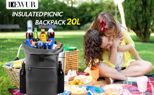 DEWUR 20L Thermo Rucksack Kühlrucksack Kühltasche Wasserdichter Picknickrucksack mit Flaschenöffner für Picknick Camping Strand Wandern Reisen Einkaufen (grey)
