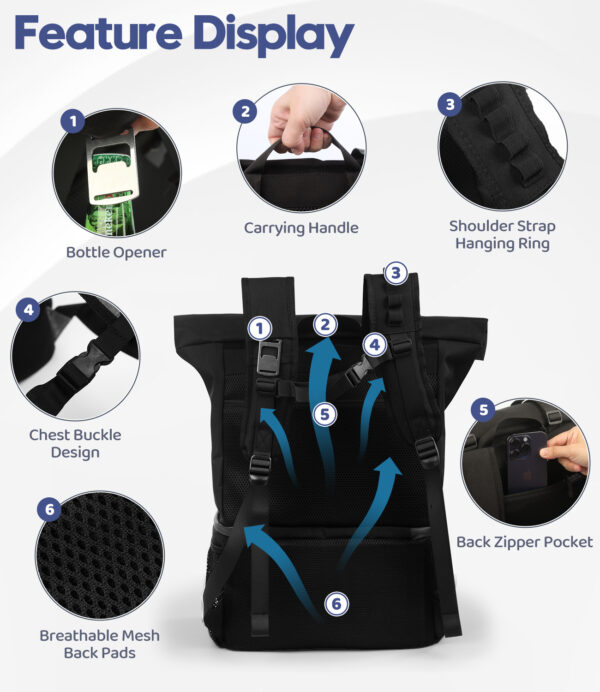 - Mehrere Fächer: Ausgestattet mit 1 großen Tasche oben, 2 Seitentaschen und 2 Vordertaschen, können Sie in den zahlreichen Taschen verschiedene Gegenstände verstauen. Die Kühltasche kann als persönliche Reisetasche verwendet werden. Der gepolsterte Griff und der abnehmbare Schultergurt bieten Ihnen 3 Tragemöglichkeiten: Sie können die Tasche mit der Hand oder mit einem Schultergurt tragen. Sie können die Tasche auch auf Ihren Koffer packen, wenn Sie reisen.