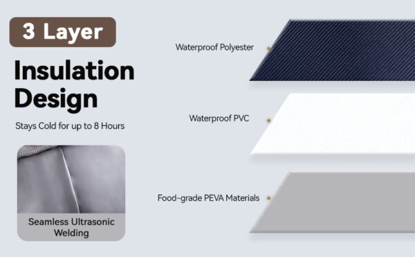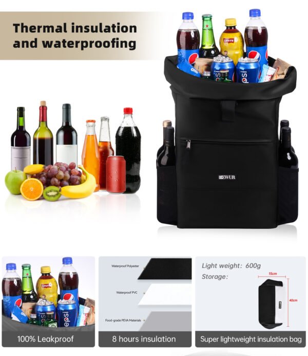 【Bis zu 8 Stunden Frischhaltung】Im Inneren befindet sich eine Isolationsschicht, und die Eisbeutel sind mit einer Wärmepressnahttechnologie verbunden. Dies gewährleistet eine leckagefreie und isolierte Leistung, so dass Ihre Lebensmittel und Getränke bis zu 8 Stunden lang kühl gehalten werden können. Egal ob lange Reisen oder Outdoor-Aktivitäten, Sie können diesen Rucksack beruhigt verwenden, um Lebensmittel und Getränke aufzubewahren.