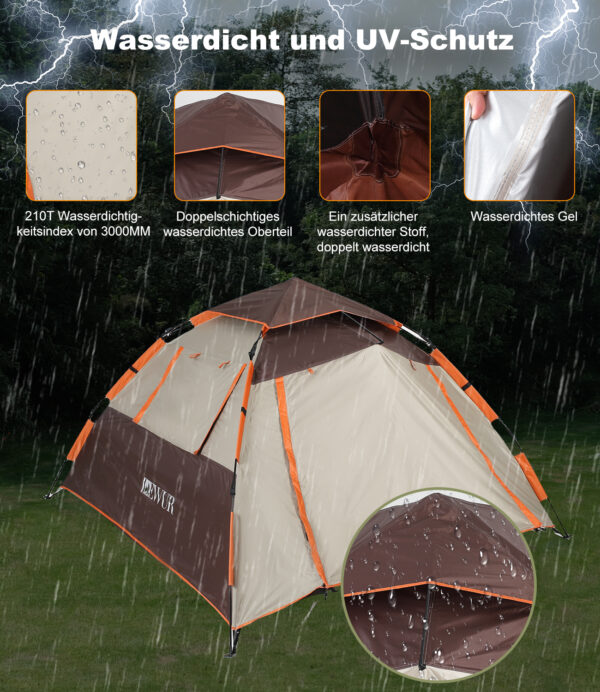 - Wasserdicht und hochwertiges Material】Das Zelt besteht aus wasserdichtem 210T Polyester mit einer UV50+ Beschichtung und einem robusten wasserdichten 210D Oxford-Boden. Das Zeltdach ist mit einem Regenschutz ausgestattet und alle Nähte sind mit einer verbesserten wasserdichten Pressung versehen, um Regen und Sonnenschutz zu gewährleisten. Das abnehmbare Außenzelt sorgt dafür, dass das Zelt bei jedem Wetter belüftet und komfortabel bleibt.