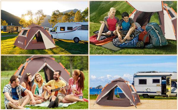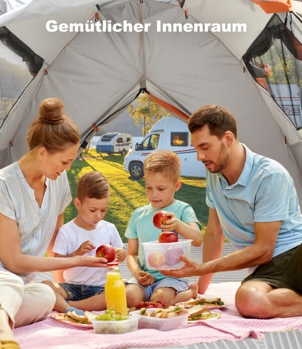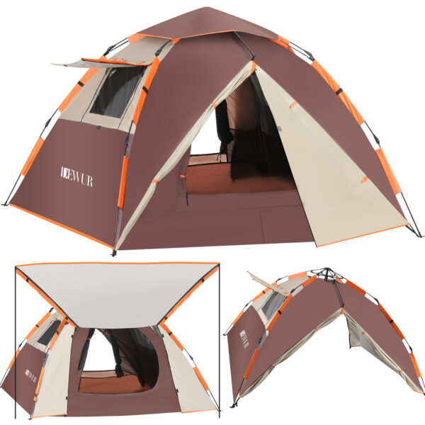 Dewur Camping Zelt, Pop up Zelt 4 Personen Familie Kuppelzelt Wasserdicht Winddicht mit 2 Mesh-Tür, Fenster, 2 in 1 Doppelschichten, Tragetasche für Camping Wandern Backpacking