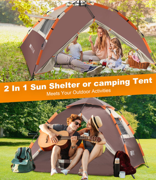 - 【2-in-1 Multifunktionszelt】Das Doppelschicht-Zelt besteht aus einem abnehmbaren Außenzelt und einem Innenzelt und kann als wind- und regenfestes Campingzelt verwendet werden. Das Außenzelt kann auch separat als Sonnenschirm, Pavillon, Markise usw. genutzt werden.