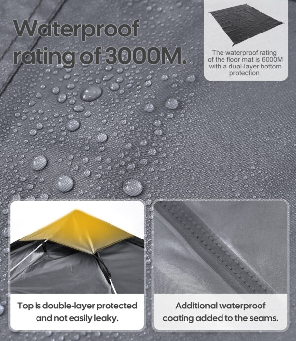 Material: 210T Polyester + UV50 Sonnenschutz + 3000mm Wasserdichtigkeit