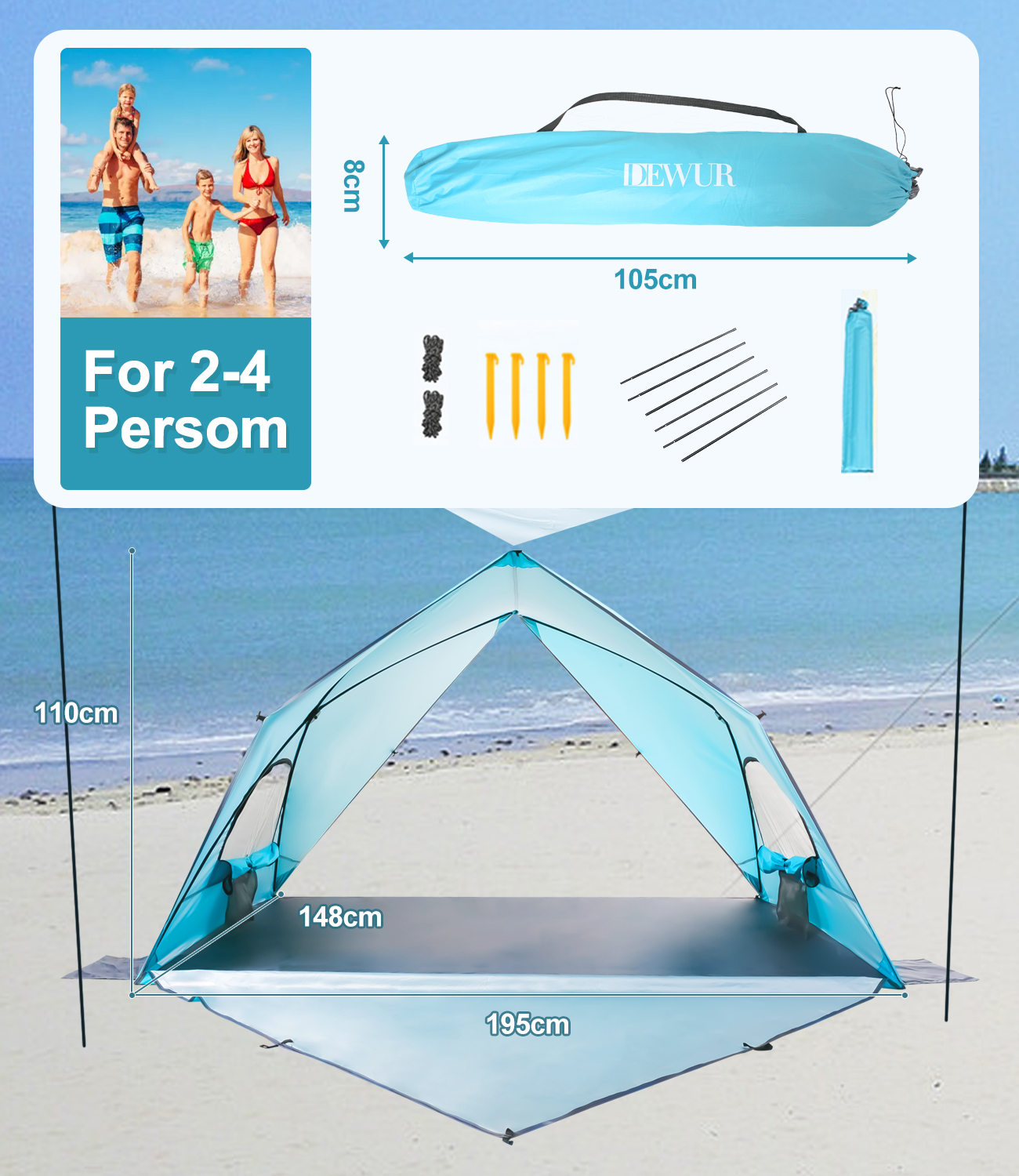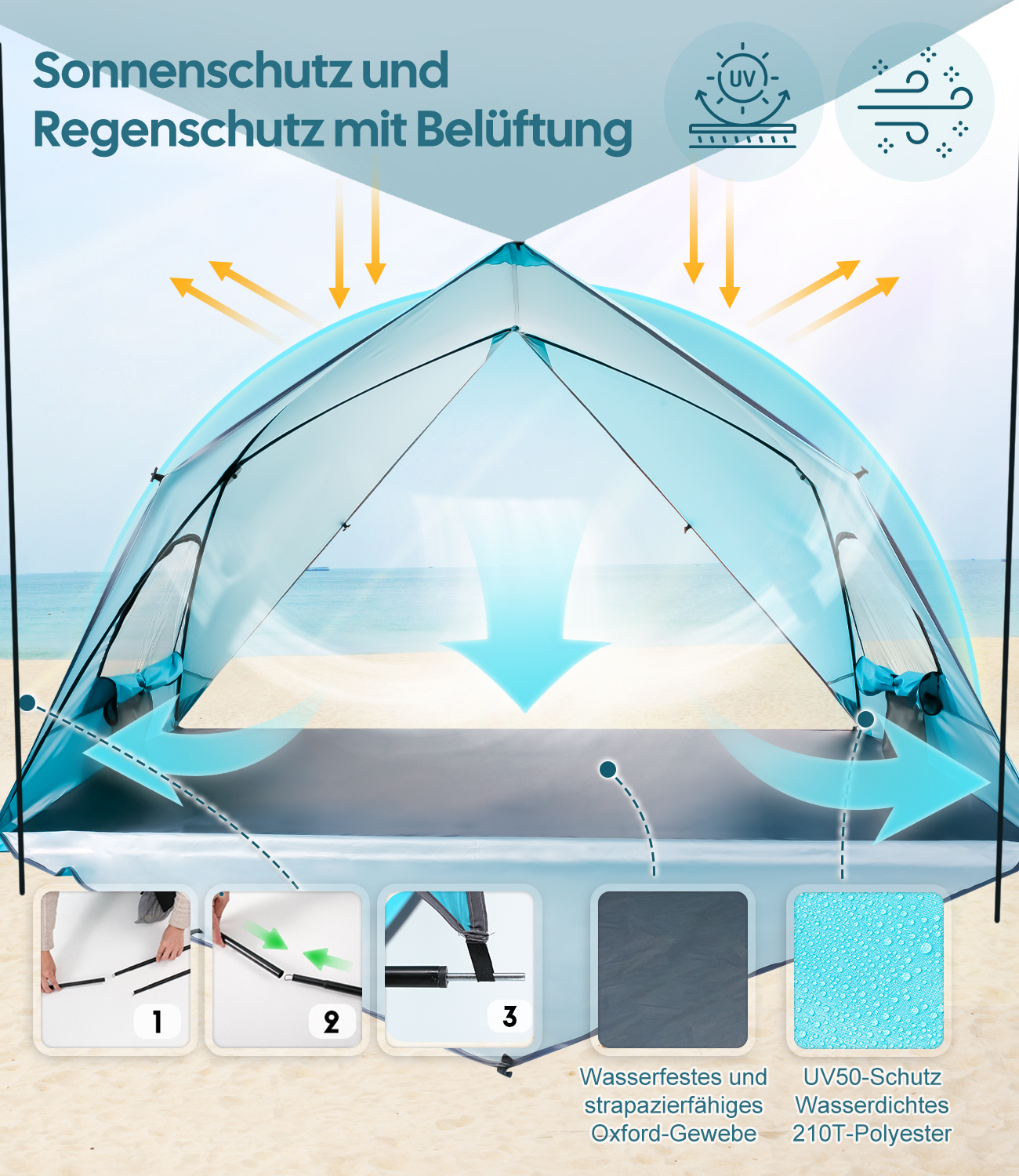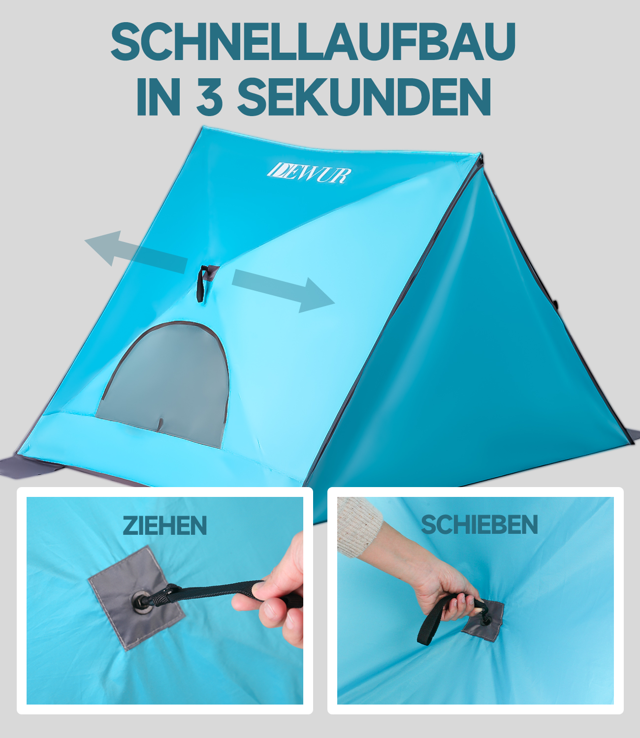 【Einfach und schnell zu Montieren】Das Pop-Up-Strandzelt lässt sich einfach öffnen。zwei Personen können das Zelt in 1 Sekunde aufbauen und abbauen (auch eine Person benötigt nur wenige Sekunden), um Ihr Strandvergnügen in kürzerer Zeit zu genießen.