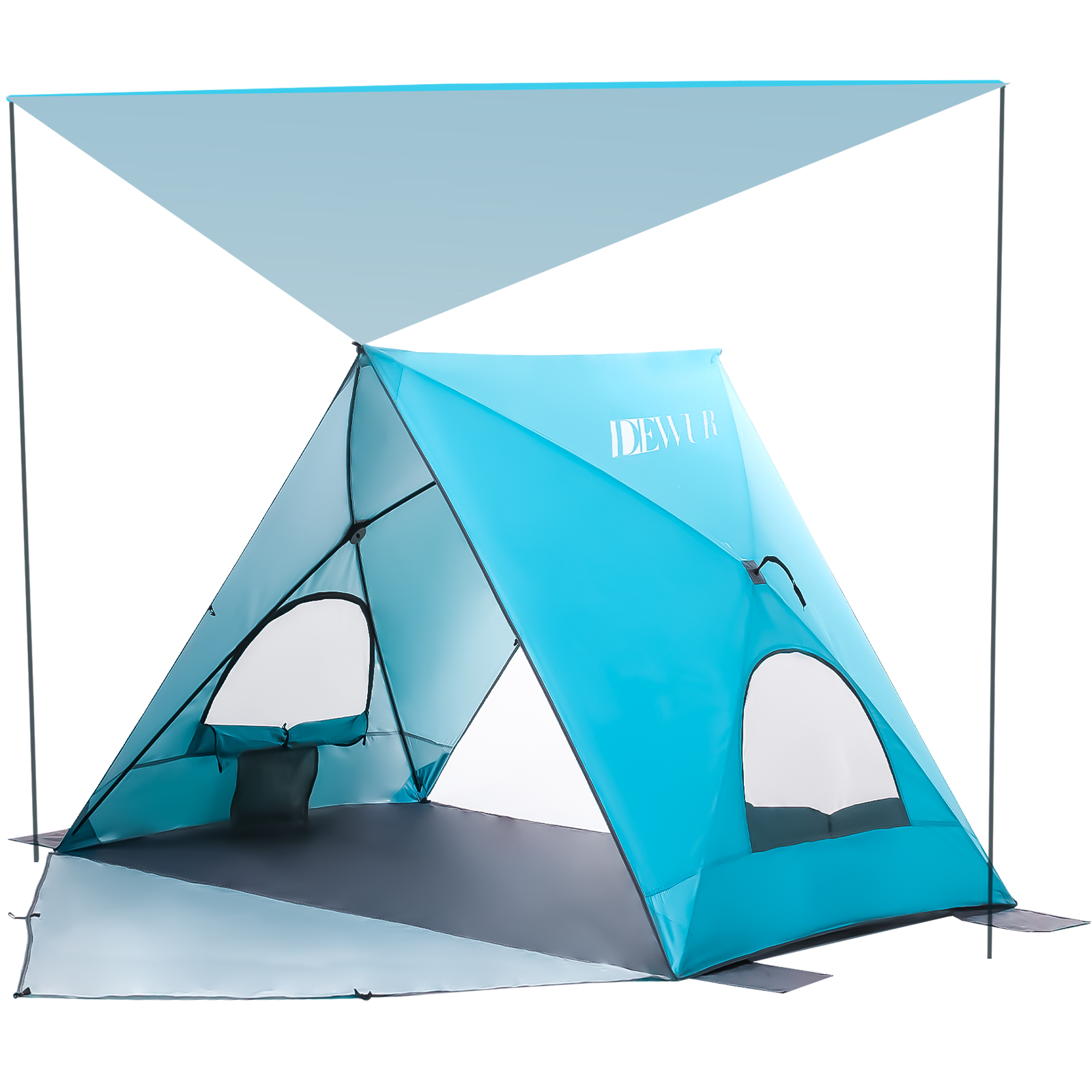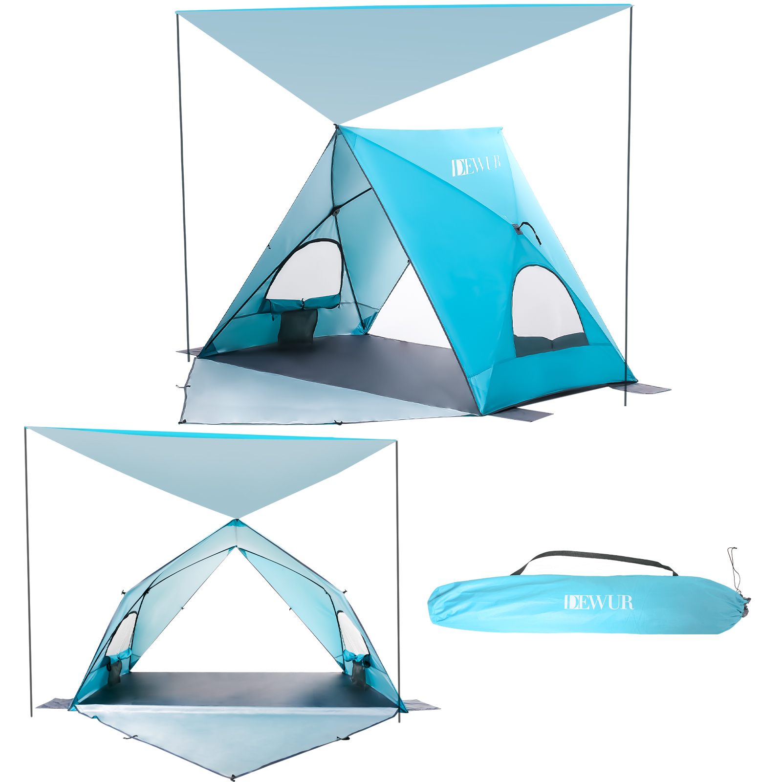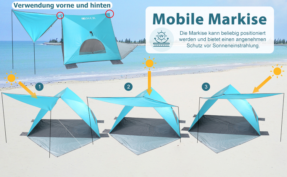 【Privatsphäre schützen】Die Türen und Fenster mit Schnappverschluss lassen sich leicht öffnen und schließen und bieten Ihnen ein wind- und regendichtes privates Strandzelt. Darüber hinaus lässt sich die Tür öffnen und dient als Strandmatte, auf der Sie bequem liegen können.