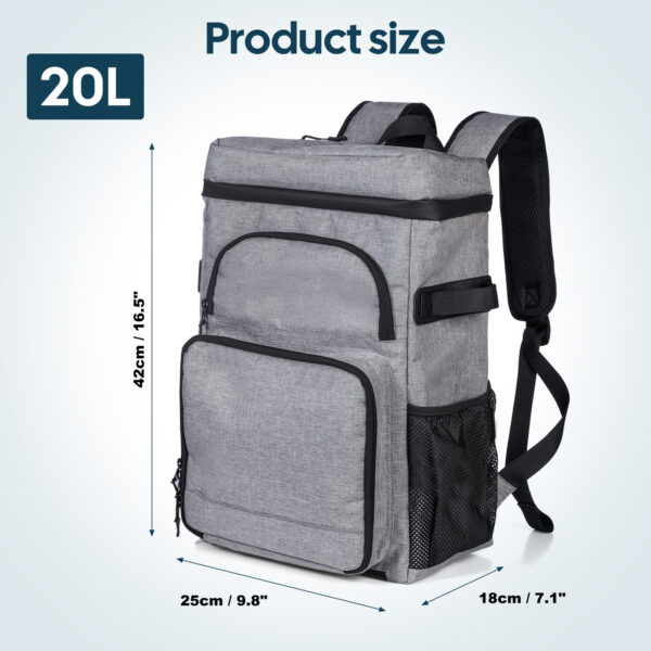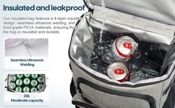 DEWUR Kühlrücksack 20L Thermo Rücksack Kühltasche Wasserdichter Picknickrücksack mit Flaschenöffner für Picknick Camping Strand Wandern Reisen Einkaufen (GREY))