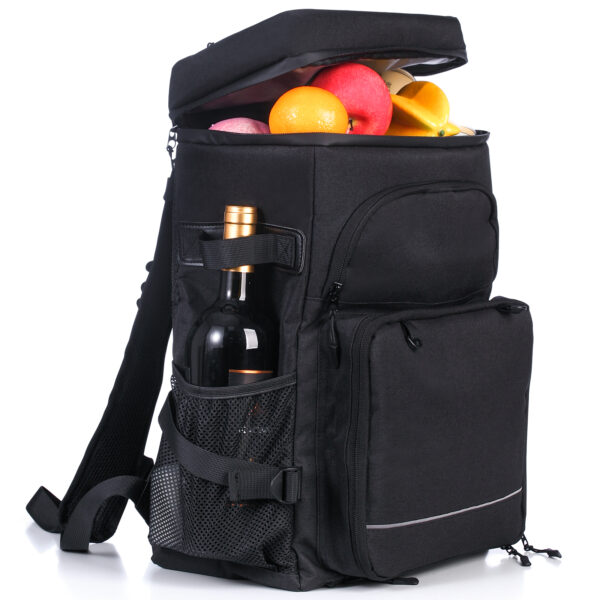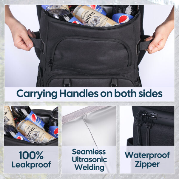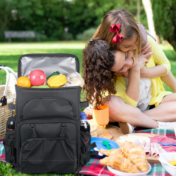 - 【8 multifunktionale Taschen】Der Rucksack enthält ein kälteisoliertes Hauptfach, eine obere Aufbewahrungsschicht mit Reißverschluss, eine untere Vordertasche zum Aufbewahren von Besteck, eine geräumige obere Vordertasche, und 2 an der Seite eine Netztasche, die 2-Liter-Getränke aufnehmen kann, eine hintere Handytasche und eine Netztasche. Mehrere Taschen können Ihre Anforderungen zum Aufbewahren verschiedener Gegenstände erfüllen.