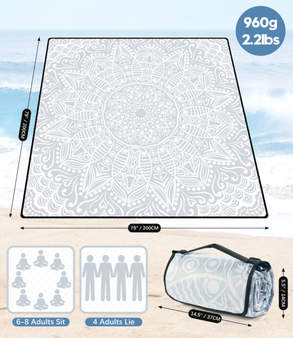 DEWUR Picnic Blanket Waterproof Washable Beach Blanket Sand-Free XXL Camping Blanket Beach Mat Insulated with Aluminium Waterproof Underside(grey, 200 x 200 cm)
