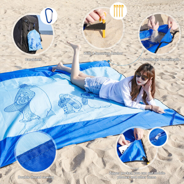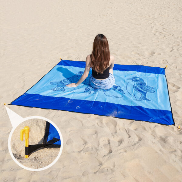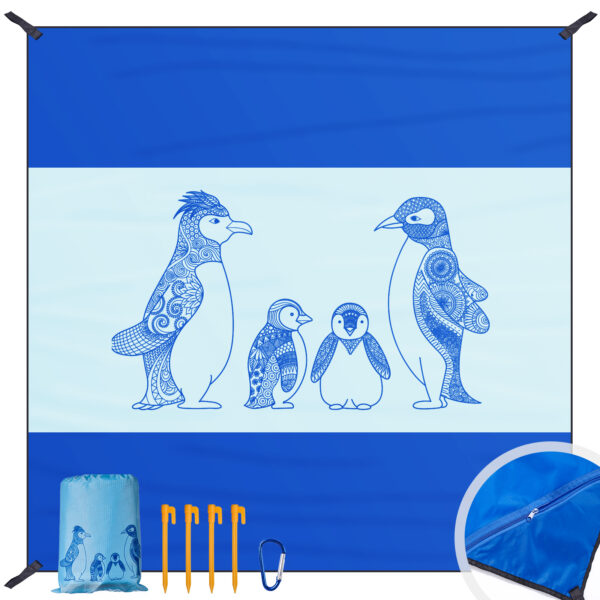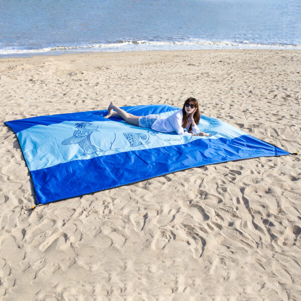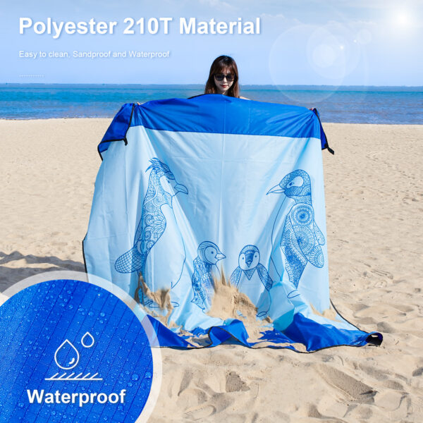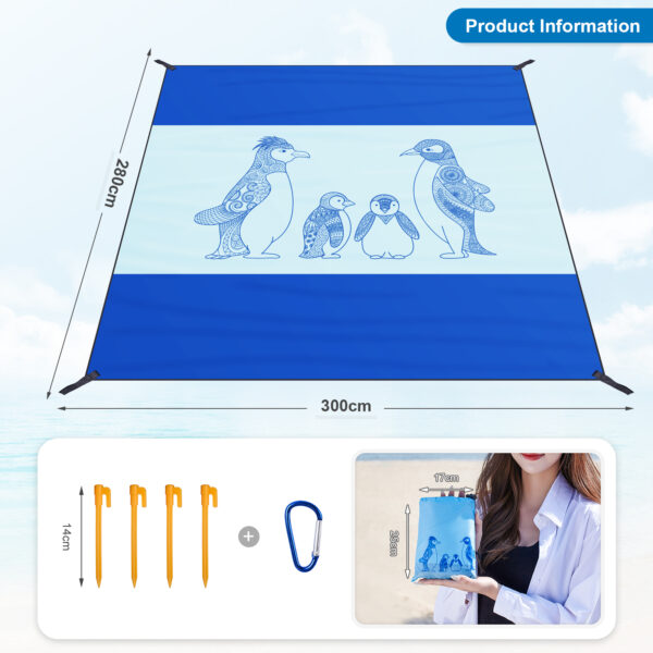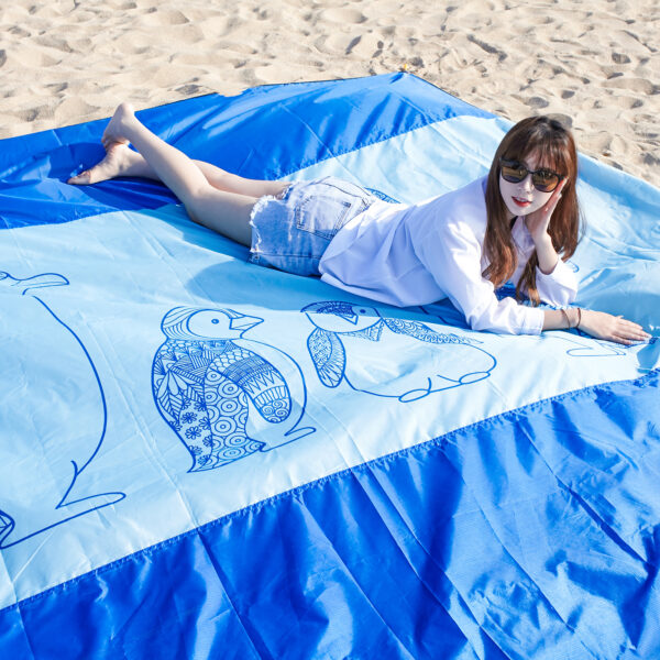 Personalisierte Designmuster – Designer haben exklusive Muster von Delfinen, Pinguinen und Quallen entworfen, um Ihre Strandmatte einzigartig und schön zu machen. Es misst 300 x 280 cm, gefaltet 25x17cm und wiegt550 Gramm.