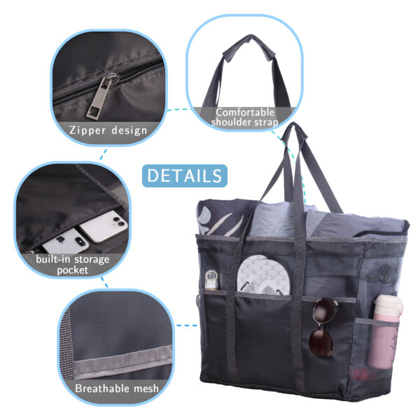 【EINZIGARTIGES DESIGN】Die atmungsaktive Strandtasche hat eine Haupttasche, 8 Außentaschen (6 blickdichte Oxford-Taschen, 2 Netztaschen an den Seiten) und eine Innentasche mit Reißverschluss. Die undurchsichtige Strandtasche mit Reißverschlussdesign kann Ihnen helfen, Ihre Sachen zu organisieren und die Sicherheit und Privatsphäre Ihrer Sachen besser zu schützen. Außerdem können Wertsachen in der Innentasche mit Reißverschluss aufbewahrt werden, um sie leicht zu organisieren und zugänglich zu machen.