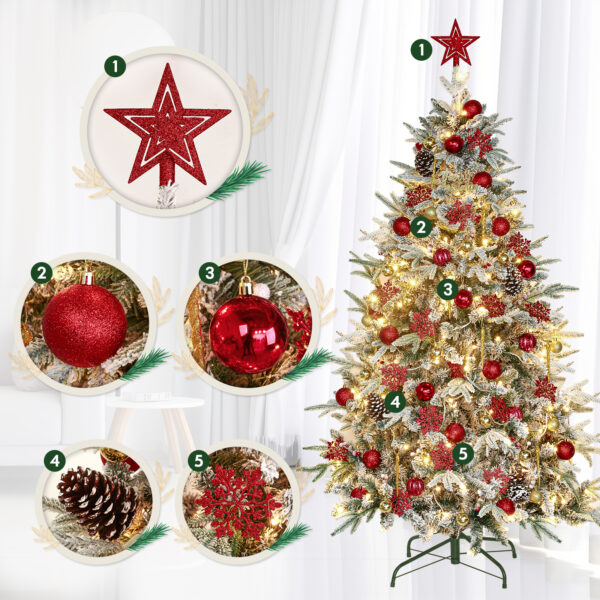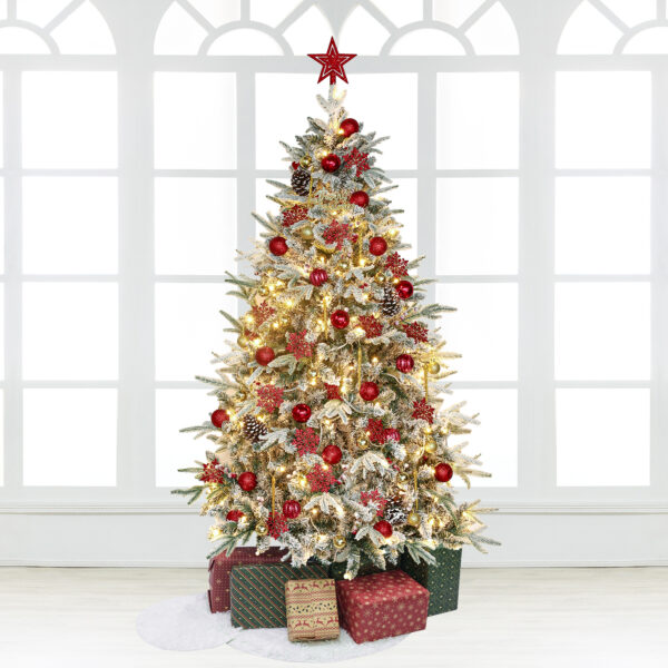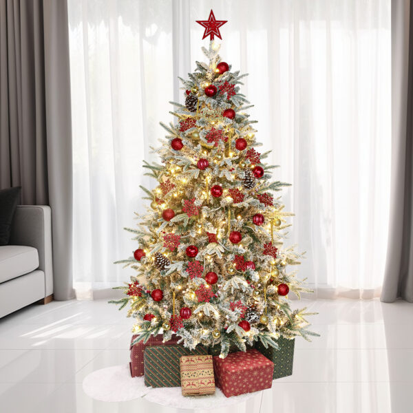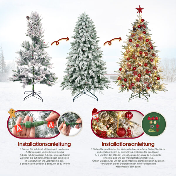 Weihnachtsbaum mit Schneeflocken – Der Weihnachtsbaum besteht aus PE- und PVC-Material und ist mit einer weißen samtigen Oberfläche versehen, die eine realistische Schneeflockenwirkung erzeugt.