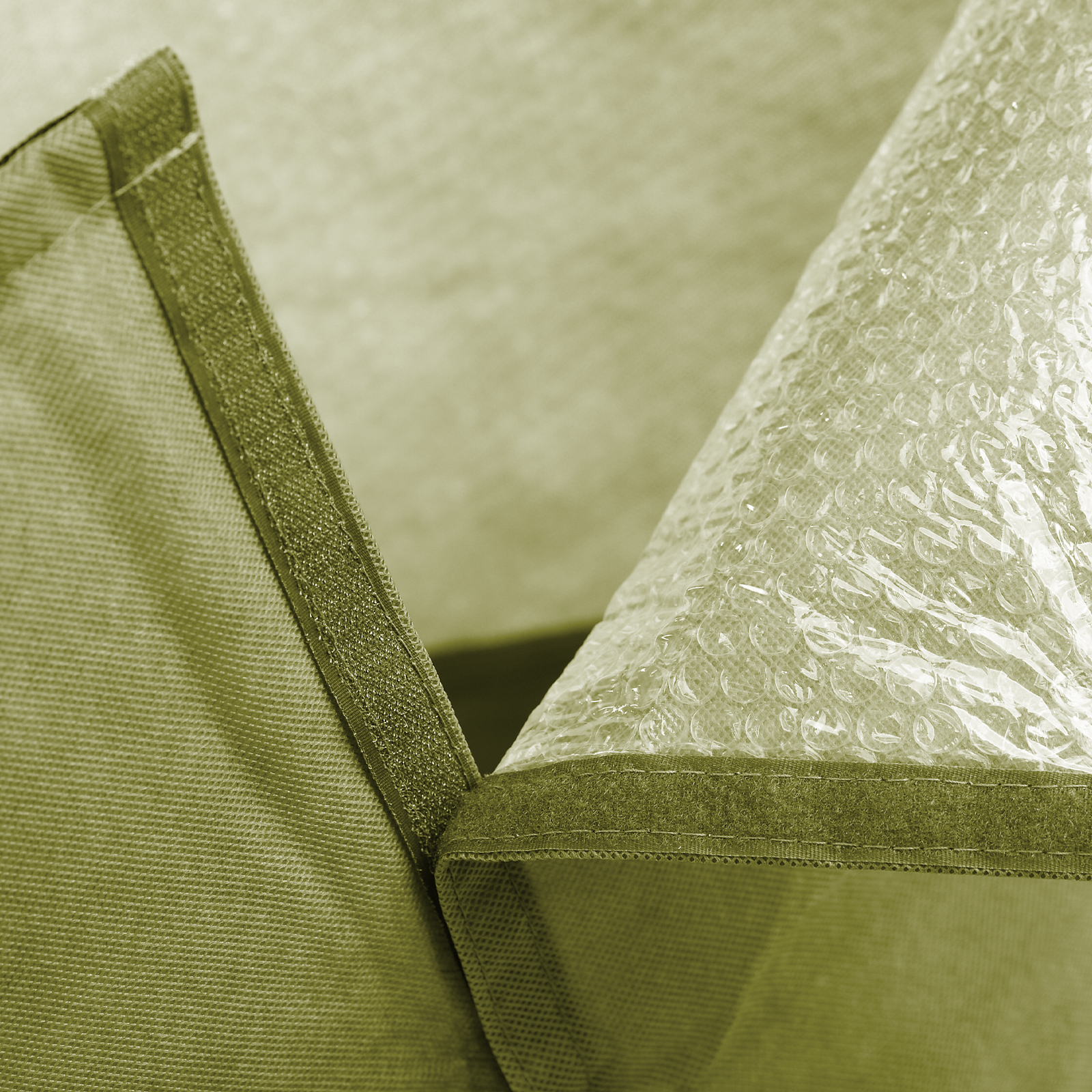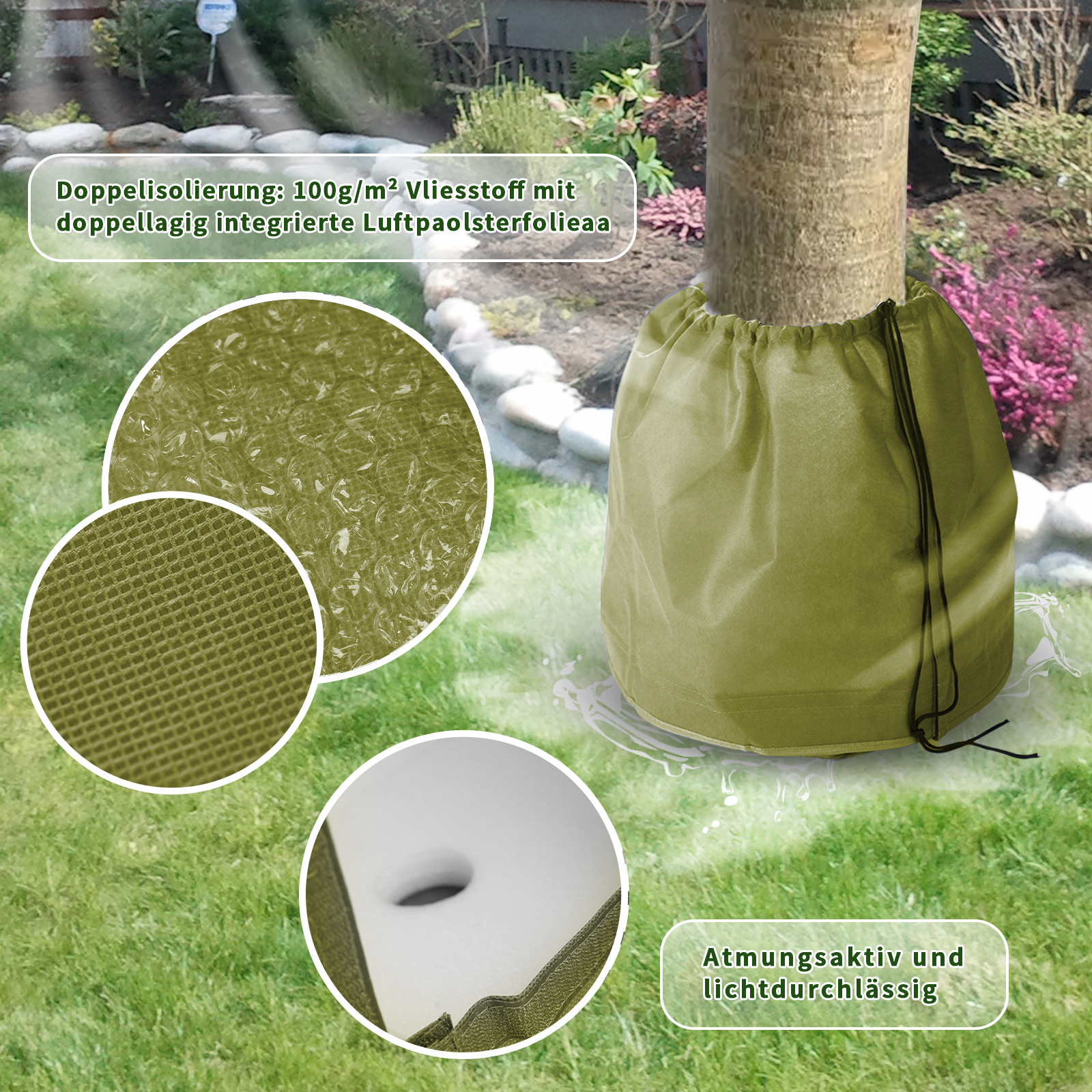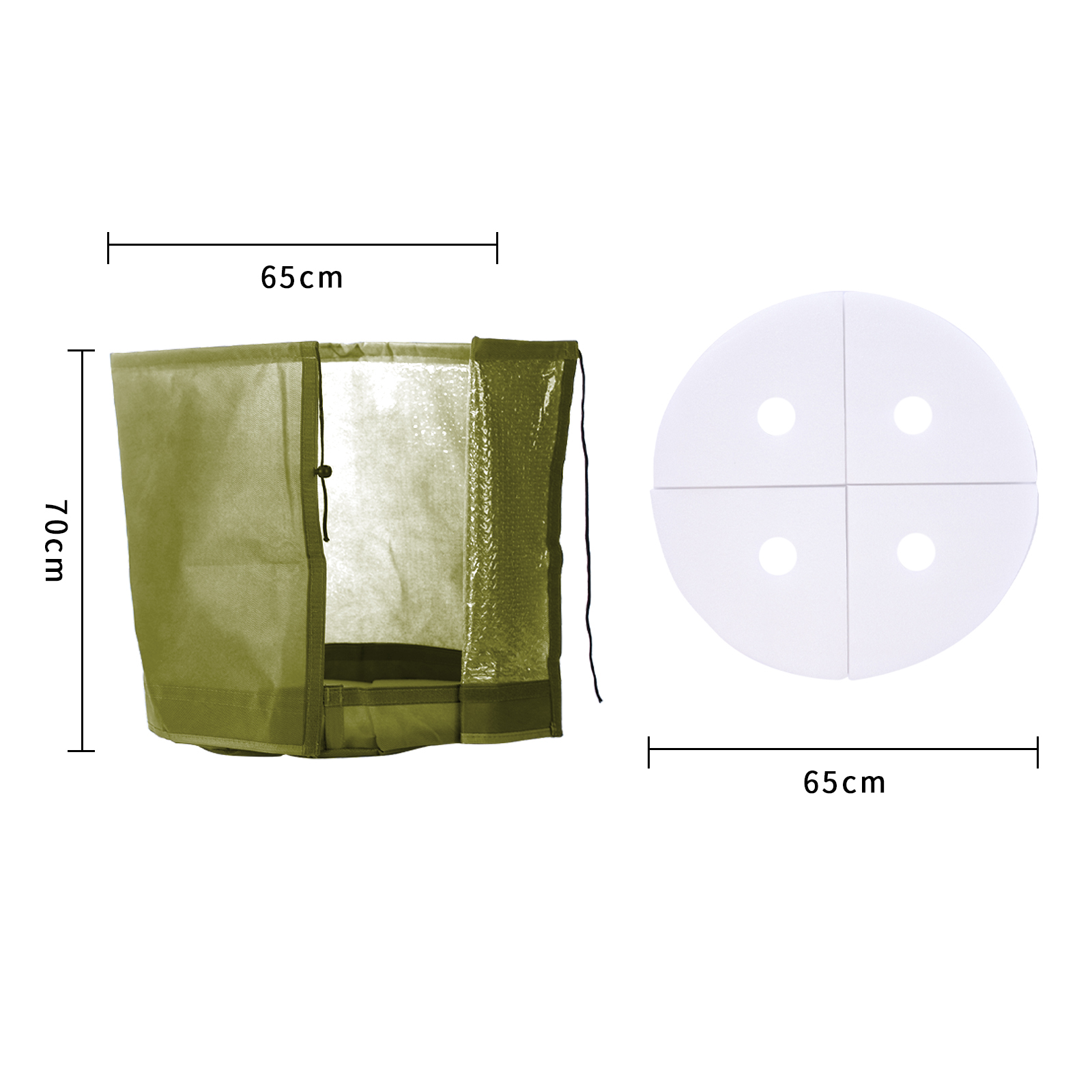 Die äußere Schicht ist ein 100g/m² Vliesstoff, und die innere Schicht ist eine doppellagig integrierte Luftpolsterfolie. Erhöhen Sie im Winter die Temperatur im Schutzabdeckung, um zu verhindern, dass die Wurzeln der Pflanze durch Kälte und Frost beschädigt werden.