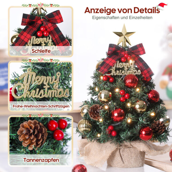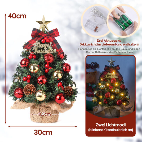 Mini Weihnachtsbaum Kleiner Weihnachtsbaum mit Beleuchtung LED Tisch Weihnachtsbaum klein künstlich geschmückt für Weihnachten Deko 40cm (Rot mit Gold)