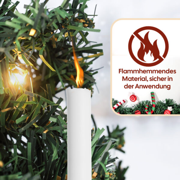 - Tisch-Weihnachtsbaum mit warmweißen Lichtern: Ausgestattet mit einer warmweißen Lichterkette mit 3 Metern 30 LEDs. Diese LED-Lichterkette ist spritzwassergeschützt und das Licht hat 2 Beleuchtungsmodi, immer an und blinkend.